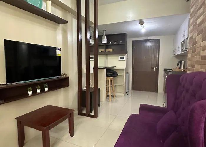 寝室1室のOne Palm Tree By Melba Studio Type マニラ市から歩いて6分離れたニューポート・モールなどの観光スポットに近接しています。 ビジネスやレジャーのお客様のニーズに合わせてWiFiと駐車場を提供しています。